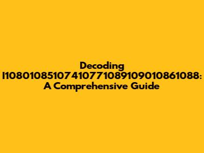 Decoding I10801085107410771089109010861088: A Comprehensive Guide