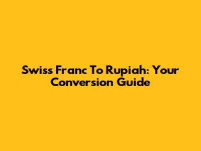 Swiss Franc To Rupiah: Your Conversion Guide
