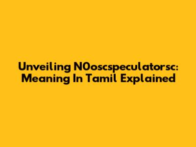 Unveiling N0oscspeculatorsc: Meaning In Tamil Explained