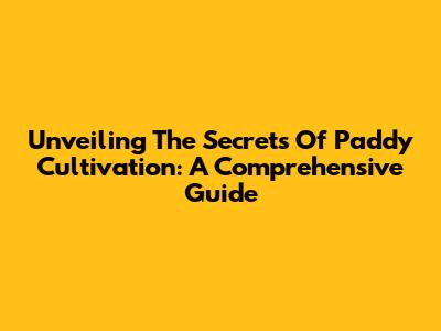 Unveiling The Secrets Of Paddy Cultivation: A Comprehensive Guide