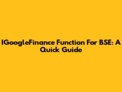 IGoogleFinance Function For BSE: A Quick Guide
