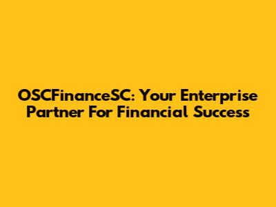 OSCFinanceSC: Your Enterprise Partner For Financial Success