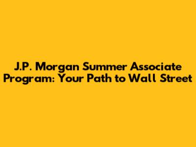 Hey future finance gurus! Ever dreamt of diving headfirst into the world of Wall Street? Well, the J.P. Morgan Summer Associate Program might just be your golden ticket. This program is a highly sought-after internship that provides undergraduate and graduate students with a fantastic opportunity to get a taste of what it's like to work at one of the world's leading financial institutions. In this article, we'll break down everything you need to know about the program, from eligibility and application tips to what you can expect during your summer stint. So, buckle up, because we're about to embark on a journey through the exciting world of J.P. Morgan's Summer Associate Program. Get ready to learn about the different divisions, the application process, and what it takes to land a spot in this prestigious program. Let's get started, shall we?