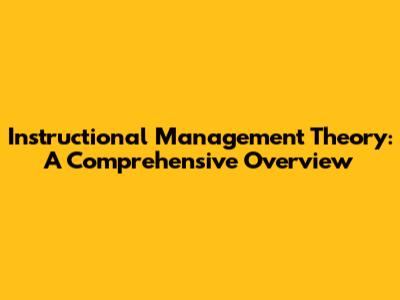 Instructional Management Theory: A Comprehensive Overview