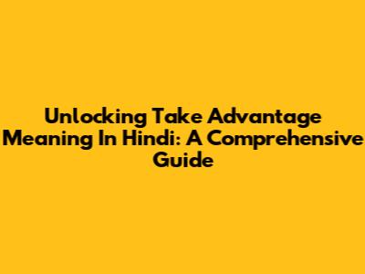 Unlocking 'Take Advantage' Meaning In Hindi: A Comprehensive Guide