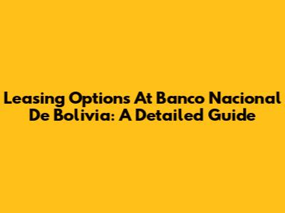 Leasing Options At Banco Nacional De Bolivia: A Detailed Guide
