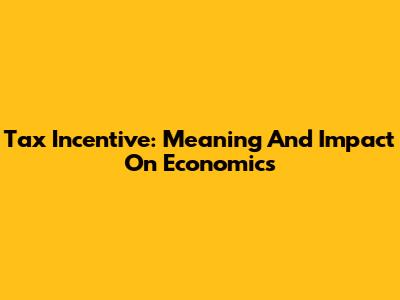 Tax Incentive: Meaning And Impact On Economics