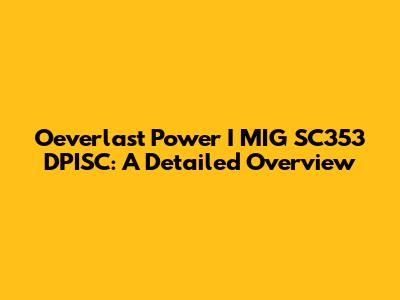 Oeverlast Power I MIG SC353 DPISC: A Detailed Overview