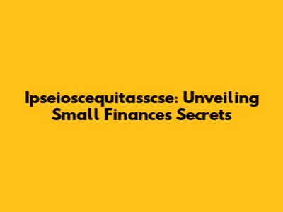 Ipseioscequitasscse: Unveiling Small Finance's Secrets