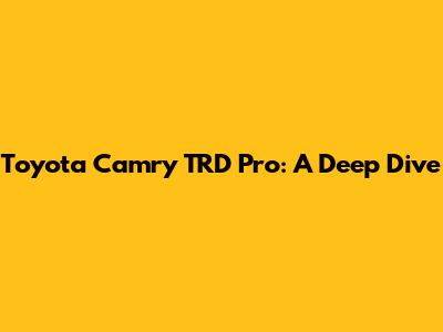 Toyota Camry TRD Pro: A Deep Dive
