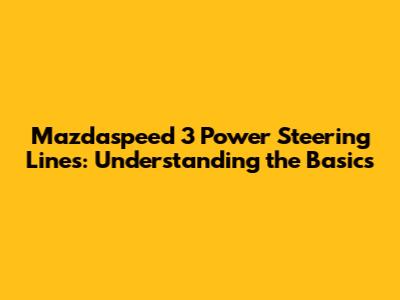 Mazdaspeed 3 Power Steering Lines: Understanding the Basics