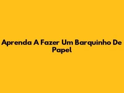Aprenda A Fazer Um Barquinho De Papel