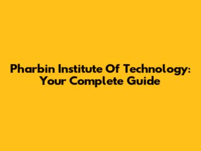 Pharbin Institute Of Technology: Your Complete Guide