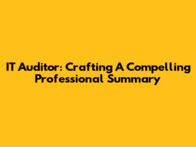 IT Auditor: Crafting A Compelling Professional Summary