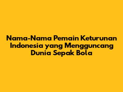 Halo, guys! Pernahkah kalian terpukau dengan aksi para pemain sepak bola yang ternyata memiliki darah Indonesia? Indonesia, sebagai negara dengan basis penggemar sepak bola yang sangat besar, tentu saja bangga memiliki pemain keturunan yang berkiprah di kancah sepak bola dunia. Artikel ini akan membahas nama-nama pemain keturunan Indonesia yang telah membuktikan kualitasnya di lapangan hijau, baik di level klub maupun tim nasional. Mari kita telusuri bersama, siapa saja pemain-pemain hebat tersebut dan bagaimana mereka mengharumkan nama Indonesia di mata dunia. Kita akan membahas perjalanan karier mereka, klub-klub yang pernah mereka bela, dan prestasi-prestasi yang telah mereka ukir.