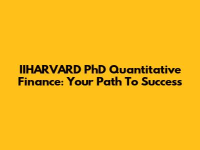 IIHARVARD PhD Quantitative Finance: Your Path To Success