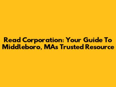 Read Corporation: Your Guide To Middleboro, MA's Trusted Resource