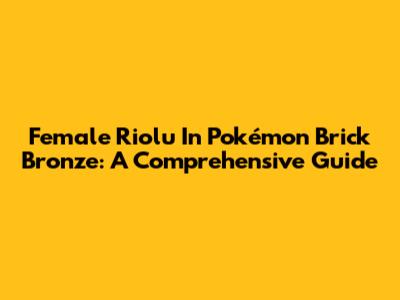 Female Riolu In Pokémon Brick Bronze: A Comprehensive Guide