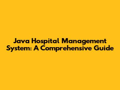 Java Hospital Management System: A Comprehensive Guide