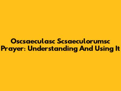Oscsaeculasc Scsaeculorumsc Prayer: Understanding And Using It