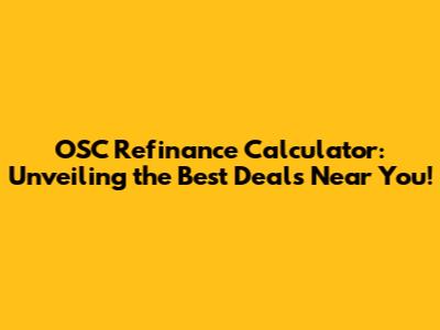 Hey there, finance enthusiasts! Have you been on the hunt for ways to save money and refinance your loans? Well, you're in luck! This article is all about the OSC Refinance Calculator, and how you can use it to find the best deals, particularly those conveniently located near you. We'll dive into what this handy tool is, how it works, and why it's a total game-changer for anyone looking to optimize their finances. So, grab your coffee, get comfy, and let's unravel the secrets of smart refinancing!