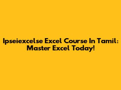 Ipseiexcelse Excel Course In Tamil: Master Excel Today!