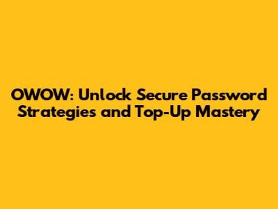 Hey guys! Ever feel like your online accounts are Fort Knox, or maybe more like a rickety shed in a hurricane? We've all been there! Today, we're diving deep into OWOW – not just the name, but a whole universe of secure password secrets, and the lowdown on how to top-up your digital currency like a pro. Forget the complex jargon and confusing tutorials; we're breaking it down in a way that's easy to digest, with a dash of fun. Ready to level up your online security and become a top-up ninja? Let's get started!