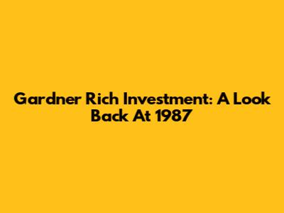 Gardner Rich Investment: A Look Back At 1987
