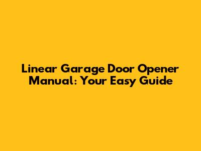 Linear Garage Door Opener Manual: Your Easy Guide