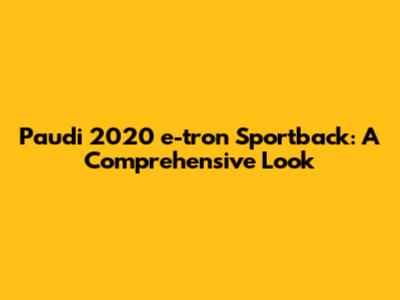 Hey guys, let's dive into the Paudi 2020 e-tron Sportback, shall we? This sleek electric SUV coupe made waves when it was released, and for good reason! This article is going to give you the lowdown on everything you need to know – from its head-turning design to its performance, range, and what makes it a solid contender in the ever-growing electric vehicle market. We'll be breaking down its key features, discussing its strengths and weaknesses, and helping you decide if this is the electric vehicle for you. Buckle up, because we're about to embark on a deep dive into the world of the Paudi 2020 e-tron Sportback!