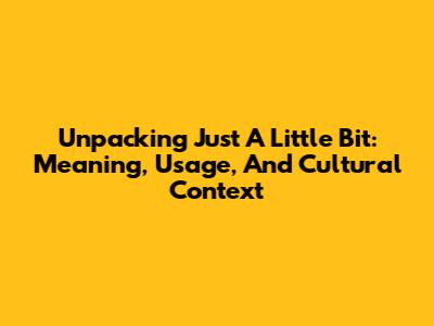 Unpacking 'Just A Little Bit': Meaning, Usage, And Cultural Context
