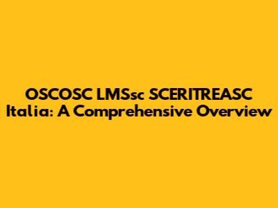 OSCOSC LMSsc SCERITREASC Italia: A Comprehensive Overview
