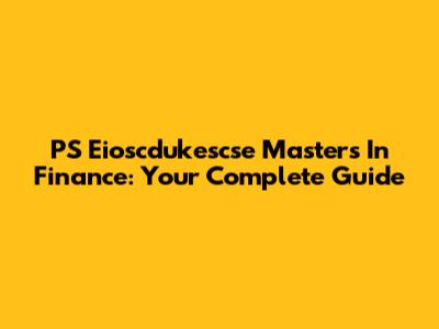 PS Eioscdukescse Masters In Finance: Your Complete Guide