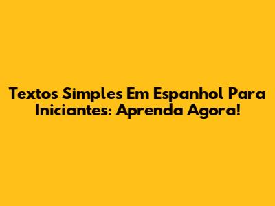Textos Simples Em Espanhol Para Iniciantes: Aprenda Agora!