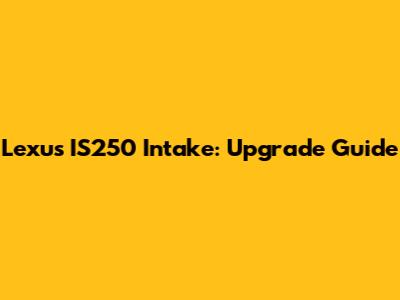 Lexus IS250 Intake: Upgrade Guide