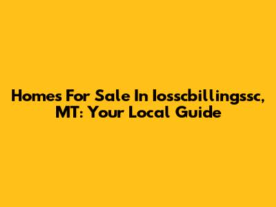 Homes For Sale In Iosscbillingssc, MT: Your Local Guide