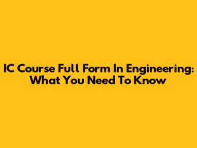 IC Course Full Form In Engineering: What You Need To Know