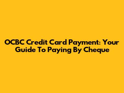OCBC Credit Card Payment: Your Guide To Paying By Cheque