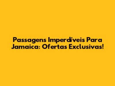 Passagens Imperdíveis Para Jamaica: Ofertas Exclusivas!
