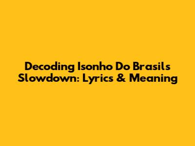 Decoding 'Isonho Do Brasil's Slowdown': Lyrics & Meaning