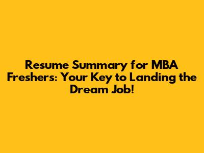What is a Resume Summary and Why is it Important for MBA Freshers?
