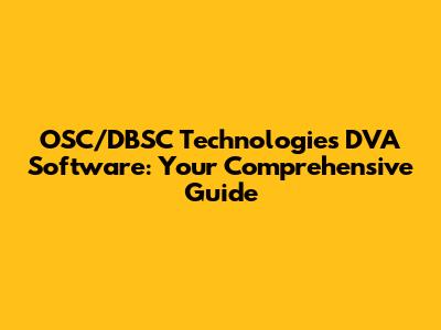 OSC/DBSC Technologies DVA Software: Your Comprehensive Guide
