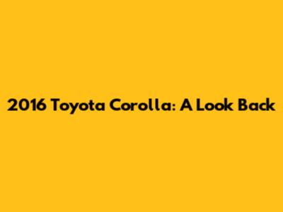 2016 Toyota Corolla: A Look Back