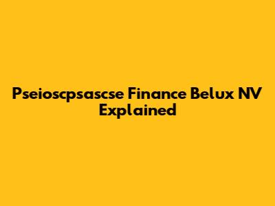Pseioscpsascse Finance Belux NV Explained