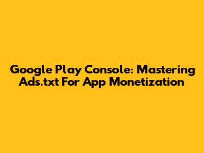 Google Play Console: Mastering Ads.txt For App Monetization