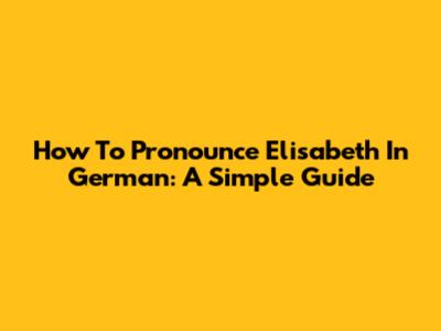 How To Pronounce Elisabeth In German: A Simple Guide