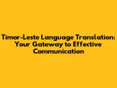 Navigating the Challenges of Timor-Leste Language Translation