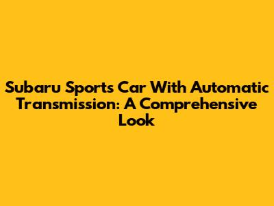 Subaru Sports Car With Automatic Transmission: A Comprehensive Look