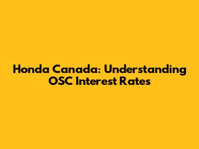 Honda Canada: Understanding OSC Interest Rates