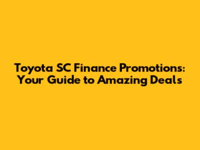 Hey everyone! Are you ready to dive into the world of Toyota SC finance promotions? Well, buckle up because we're about to explore all the fantastic deals and offers available right now. If you're looking to snag a new Toyota, you're in luck! Toyota SC (which I'm assuming is a dealership or a specific region) often rolls out some seriously enticing finance promotions. These promotions can make owning a Toyota more affordable than you might think. We're talking about lower interest rates, flexible payment plans, and sometimes even cash back incentives. This guide will walk you through everything you need to know about these promotions. We'll uncover what to look for, how to maximize your savings, and how to ensure you're getting the best possible deal. Whether you're eyeing a sleek Camry, a rugged Tacoma, or a spacious RAV4, understanding these promotions is key. Let's get started and see how you can drive away in your dream Toyota without breaking the bank. Toyota, known for its reliability and innovation, also understands the importance of providing attractive financing options. They know that a good finance deal can make all the difference in a customer's decision. That's why they team up with dealerships like Toyota SC to create promotions that are both competitive and beneficial for buyers. You'll often find special offers tied to specific models or times of the year, so it's always a good idea to stay informed. Keep an eye out for seasonal promotions like end-of-year sales or summer clearance events. These periods are prime opportunities to secure a great deal on a new Toyota. Plus, Toyota sometimes partners with different financial institutions, which can lead to even more diverse and attractive financing options. So, are you ready to discover the secrets behind Toyota SC finance promotions? Let’s jump right in and see how you can make your Toyota dreams a reality!